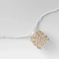 Bring boho vibes to your outdoor oasis with these 10-Count Incandescent Mini Lights with Wrapped Rattan Hoods from Opalhouseā¢. Designed with 10 mini incandescent bulbs on a white wire, these patio string lights make a perfect addition to your deck or other outdoor entertaining space to help you keep enjoying it into the evening. Each bulb on this string of outdoor decorative lights features a wrapped rattan hood for a warm and textured look that pairs perfectly with potted plants and colorful patio cushions to complete your entertaining space.