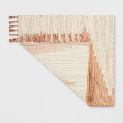 The Tapestry Woven Outdoor Rug from Opalhouse⢠is a great way to tie together a specific outdoor spot while separating it from the rest of the yard. Made of lightweight material, this rectangular area rug showcases a beautiful woven row of white diamonds running down the middle of a rust background, as well as rust tassels on the corners for added flair. The woven area rug sports a flat-pile construction that allows for easy maintenance and effortless placement, along with spray latex backing to help keep it in place wherever you choose to spread it.